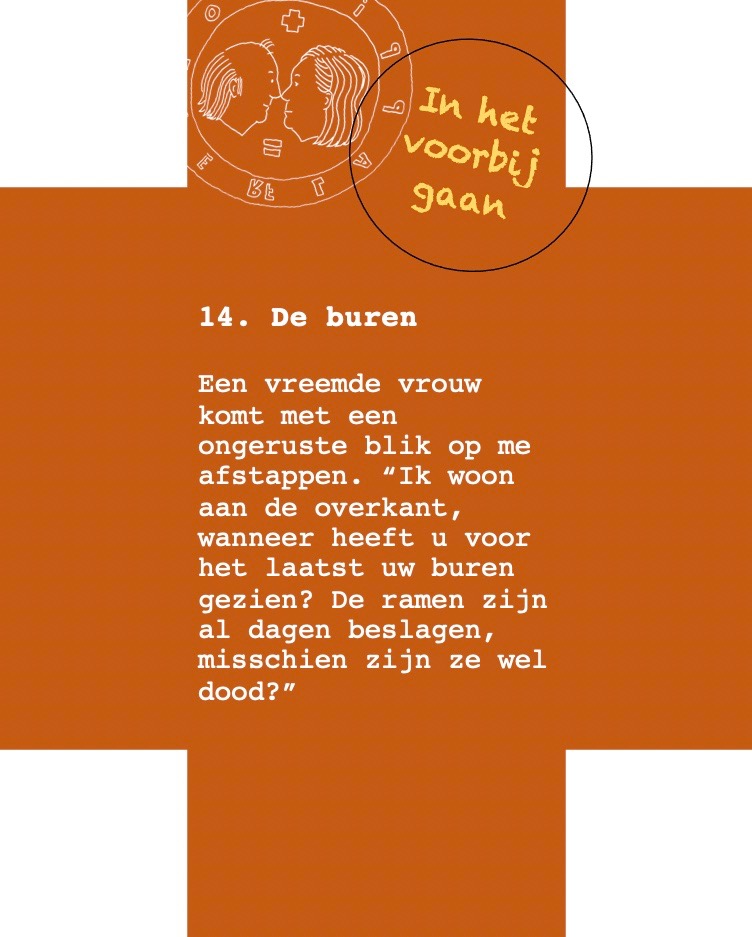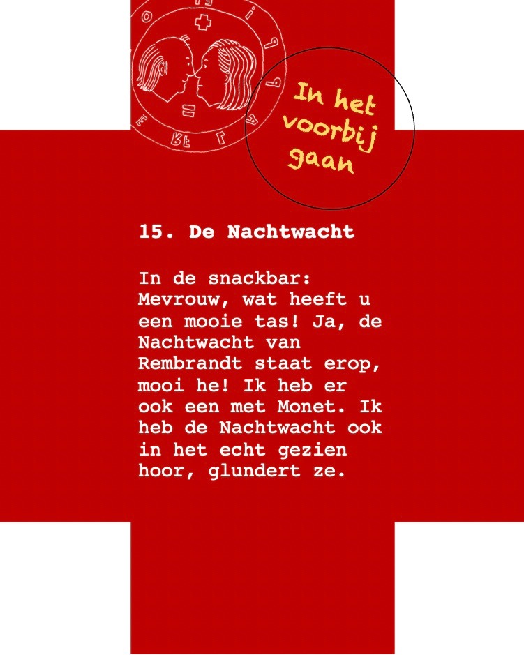 In het voorbijgaan is een serie ultra korte verhalen, ook wel nano-verhalen genoemd. In 20 tot 30 woorden schetsen we een kleine, opmerkelijke scene, uit het leven gegrepen.